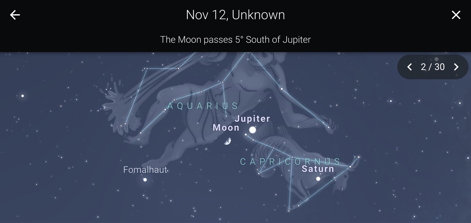Stellarium shows you an accurate projection of the night sky on any given date and location and provides insightful information on any astronomical object with a single press. To keep yourself up to date with more astronomical events like the Moon conjunctions, download Stellarium on your mobile devices today!